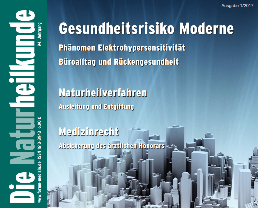 Karl Hecht befasst sich in der Zeitschrift Die Naturheilkunde 1/2017 mit der riskanten Verschmutzung unserer Umwelt durch Elektrosmog. Der Autor gibt einen bündigen Überblick „über die gesundheitsschädigenden Folgen dieser Umweltverschmutzung“.